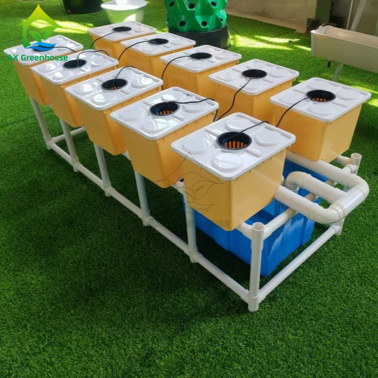 Υδροπονικό σύστημα Dutch Bucket είναι σχεδιασμένο για την καλλιέργεια φυτών με αμπέλια - ντομάτες, αγγούρια, μελιτζάνες και πιπεριές. Τα βαρέλια Dutch, γνωστά και ως βαρέλια φύτευσης HL, διατίθενται σε μπεζ και μαύρα χρώματα, με λευκό επάνω κάλυμμα και μοναδική δομή σχεδιασμού, η οποία είναι πιο ευνοϊκή για την ανάπτυξη των ριζών των φυτών. Το επάνω κάλυμμα μπορεί να εμποδίσει το φως και να αποτρέψει την αναπαραγωγή των φυκών. Η συσκευή αποστράγγισης σιφωνίου στο κάτω μέρος επιτρέπει την επιστροφή της περίσσειας θρεπτικού διαλύματος στην δεξαμενή θρεπτικού διαλύματος. Υπάρχει μια υδατοφόρος ορίζοντας 5 cm στο κάτω μέρος, η οποία είναι κατάλληλη για την καλλιέργεια ντοματών, αγγουριών, πιπεριών, μελιτζανών και άλλων φρούτων και λαχανικών.