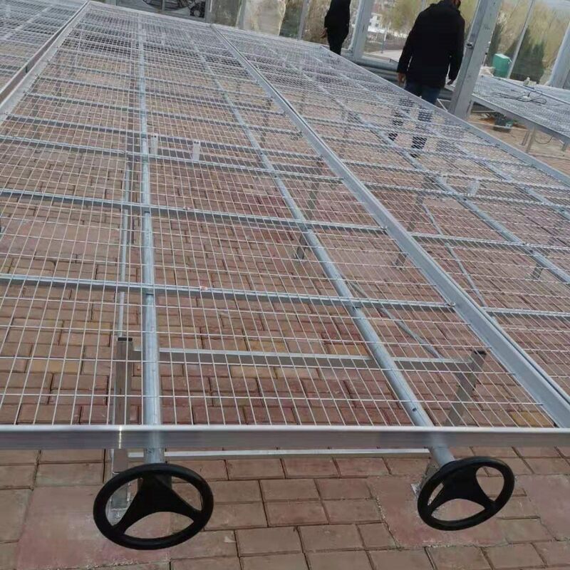 The rolling bench is an essential growing system designed for commercial greenhouses and nursery centers. Engineered with an aluminum frame and heavy-duty galvanized mesh surface, this bench combines lightweight construction with exceptional durability. The innovative side-to-side rolling mechanism dramatically improves space utilization and planting density.